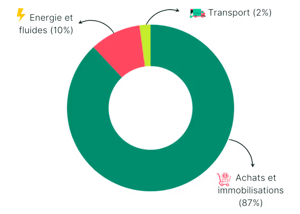 Cela est dû à notre poste achats et immobilisations qui représente 87 % de nos émissions, intégralement comptabilisées dans notre scope 3. En effet, nos solutions intègrent des capteurs (hardware) indispensables à la récolte de données sur les flux de déchets à analyser. Ces capteurs nécessitent l’achat de nombreux composants électroniques provenant principalement d'Asie. Or l’impact de la fabrication de ces composants, de l’extraction des matières premières qu’ils mobilisent, leur transport, etc. est très élevé. C’est pourquoi il constitue notre principale source d’émissions de gaz à effet de serre.