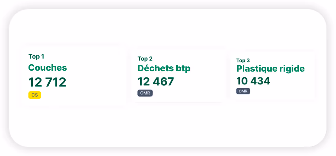 Les nouvelles données générées par Omnia s’intègrent directement aux tableaux de bord existants sur la plateforme Lixo. Les indicateurs sont recalibrés pour refléter la granularité accrue et les nouvelles classes détectées, tout en restant cohérents avec les méthodologies précédentes.
